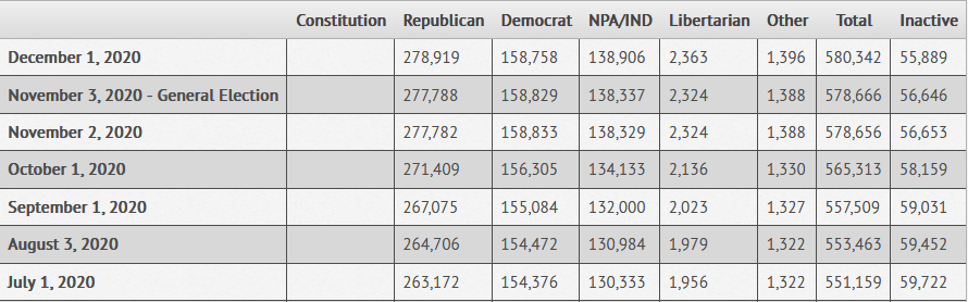 The LPSD saw a pretty big jump in registered Libertarians leading right up to election night and continuing on from the looks of it. The party grew by 384 voters between July and December this year.