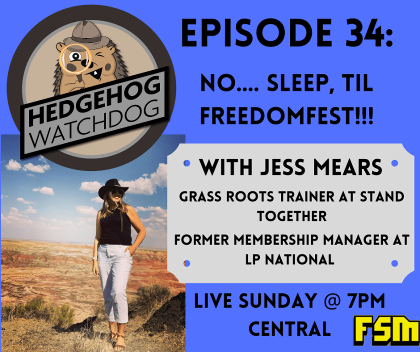 We interview former membership manager of the Libertarian Party and Freedom Fest speaker Jess Mears. 2nd Hr LPSD Vice Chair Collin Duprel. Episode Sponsored by Pinkcoin.com, CampRidger.Net, and Dakota Rustler. Donate to the show: https://www.patreon.com/hedgehogwatchdog